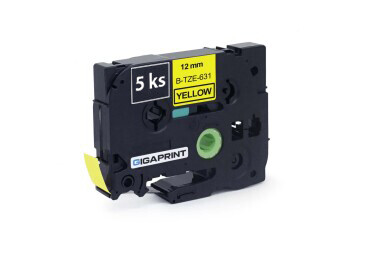5 ks pások BROTHER TZe-631 12mm čierna tlač/žltý podklad, laminovaná - kompatibilná sada